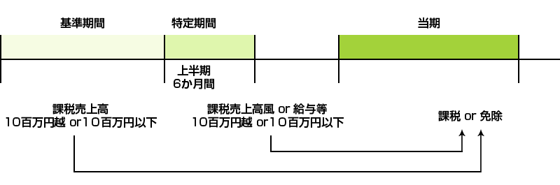 (注1)平成25年1月1日1以後に開始する年又は事業年度については、その課税期間の基準期間における課税売上高が1,000万円以下であっても特定期間における1,000万円の判定は、課税売上高に代えて、給与等支払い合計額により判定することもできます。