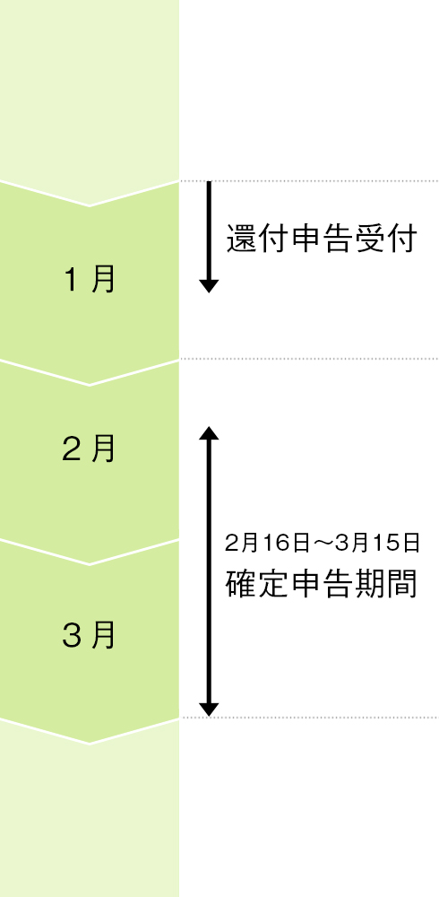 | 還付申告 受付 | 2月16日〜3月15日 確定申告期間 |